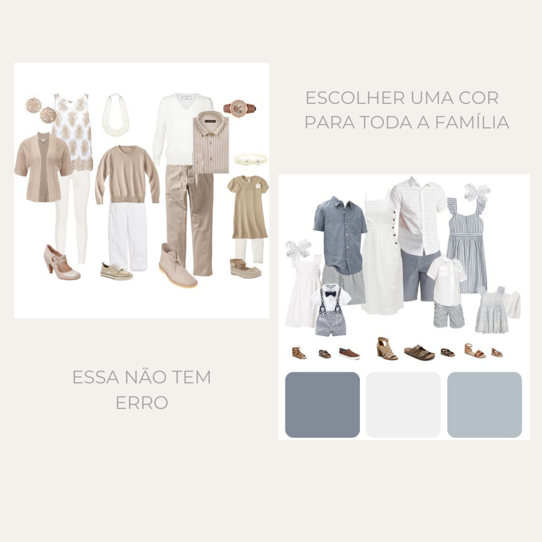 Podem ser todos looks seus ou 1 ou 2 do estúdio. O bom é levar pelo menos um look seu, para ficar ainda mais com sua carinha a sua sessão.